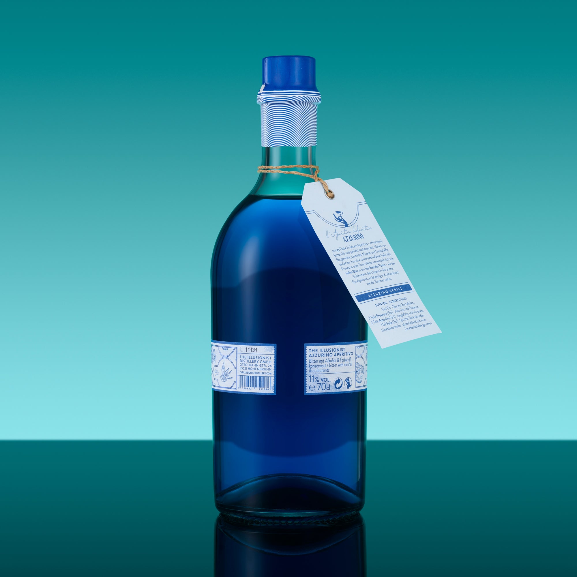 The Illusionist Azzurino Aperitivo 700ml - Side View with Hanging Tag